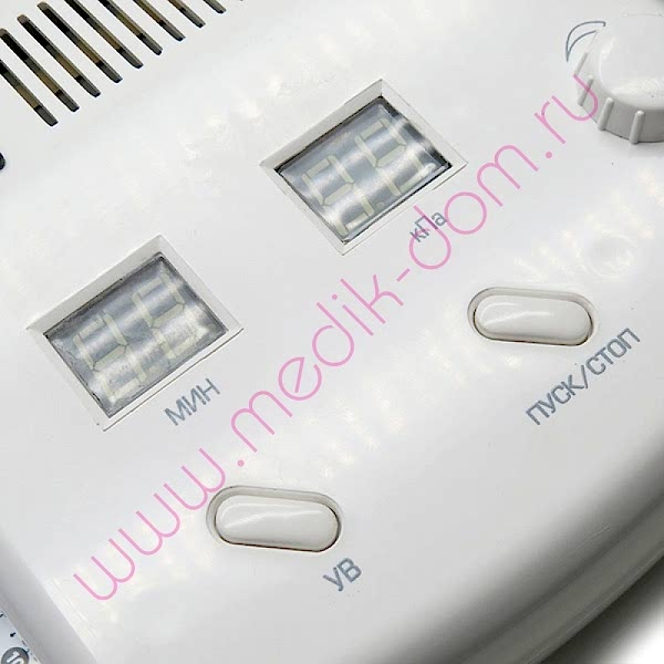 - Аппарат ВМ-50-01 имеет индикатор Pin-Up и обратного отсчета времени. Для того, чтобы насос автоматически отключился после окончания массажа, с помощью кнопки "УВ" последовательным ее нажатием установить на индикаторе "МИН" время, необходимое для проведения данного вида массажа. Нажав кнопку "ПУСК После заданного количества минут работы насос автоматически отключится, а на индикаторе вновь появятся цифры, соответствующие заданному перед массажем времени. Для провторного проведения массажа в течение заданного времени достаточно нажать кнопку "ПУСК
