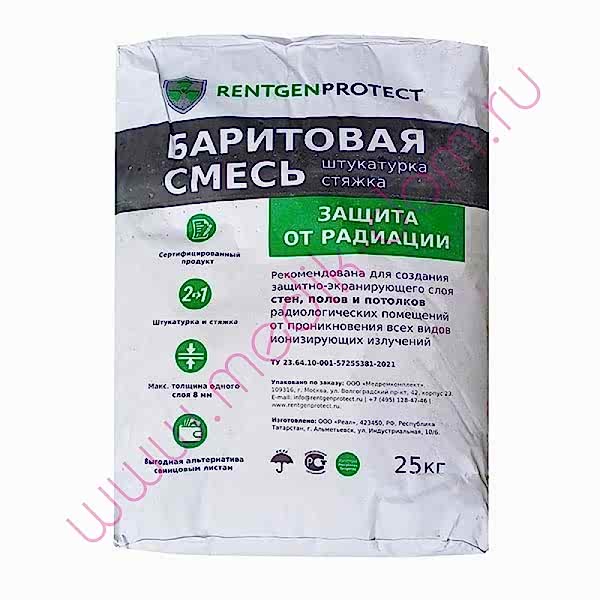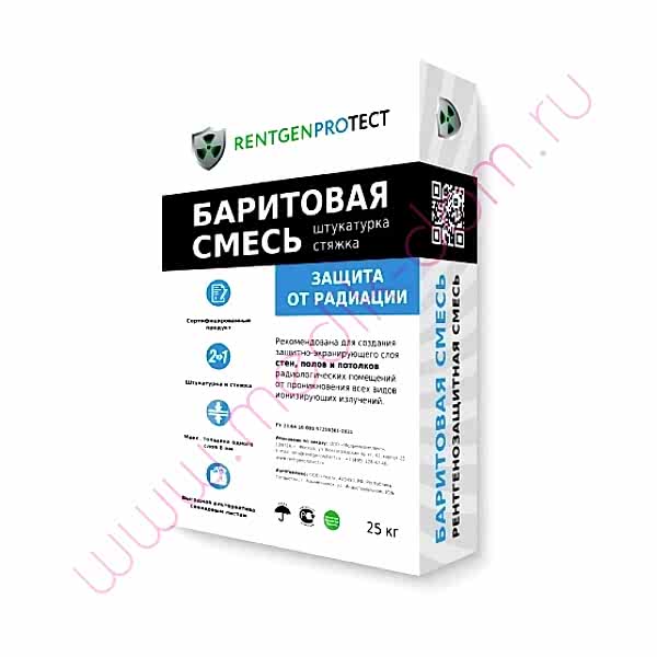 Рентгенозащитная баритовая штукатурка Rentgenprotectпредназначена для защиты Pin-Up сотрудников и пациентов от воздействия рентгеновского излучения в медицинских учреждениях (флюорографических, рентгенографических и рентгенодиагностических и стоматологических кабинетов, а также иных помещений при необходимости).